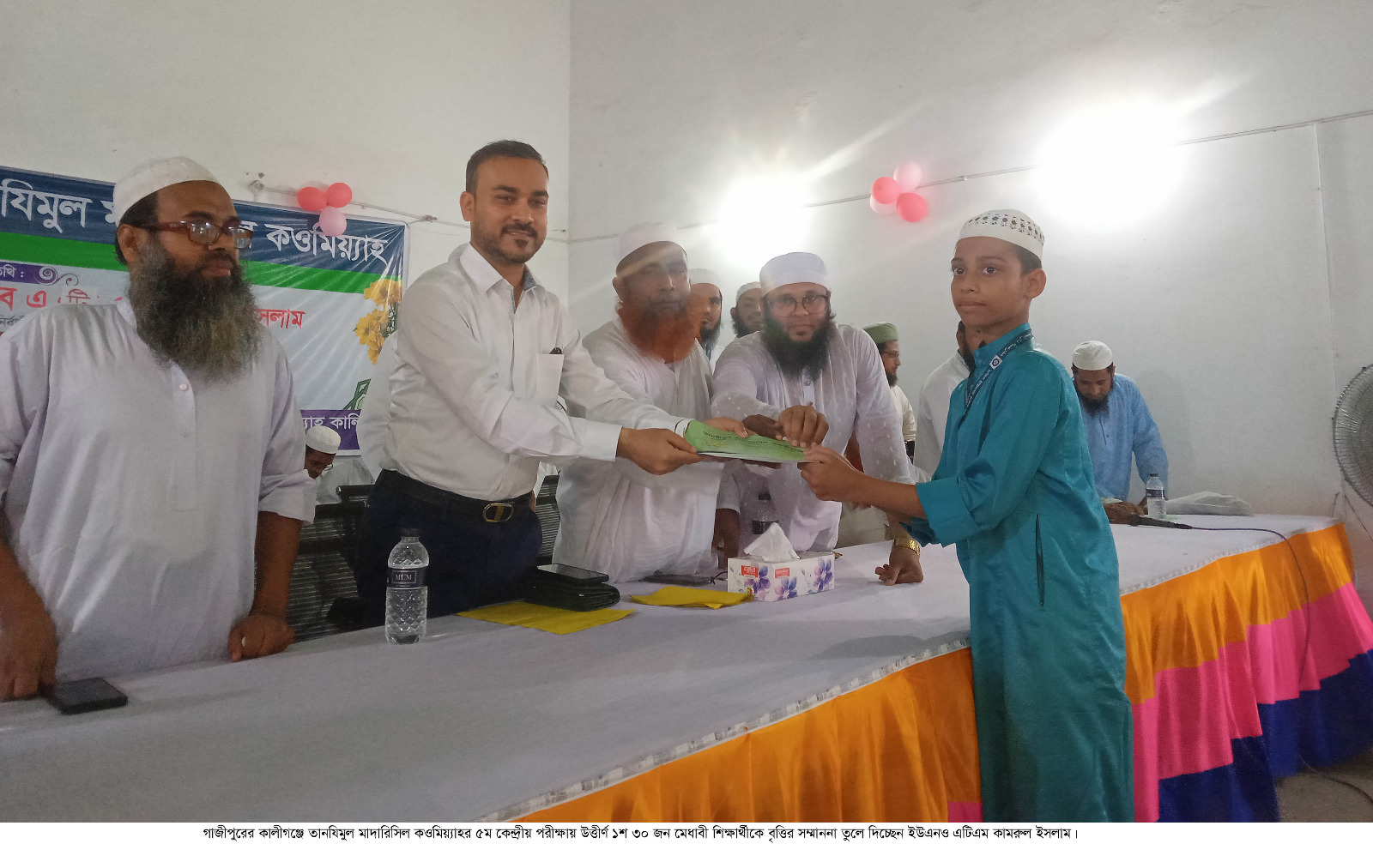 গাজীপুরের কালীগঞ্জে তানযিমুল মাদারিসিল কওমিয়্যাহ এর ৫ম কেন্দ্রীয় পরীক্ষায় উত্তীর্ণ ১শ ৩০ জন মেধাবী শিক্ষার্থীকে বৃত্তি প্রদান করা হয়েছে।